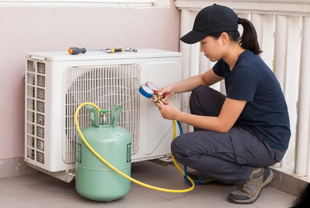 In UAE, some workshops use low-quality refrigerant or manual charging without pressure control.